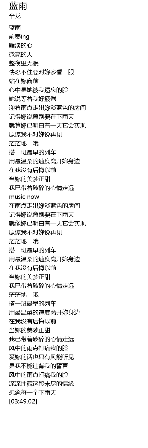 | [01:47.36] | 在雨点走出妳淡蓝色的房间 |