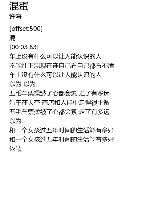 | [00:37.35] | wǔ máo chē piào róu zhòu le xīn dōu huì lèi zǒu le yǒu duō yuǎn |