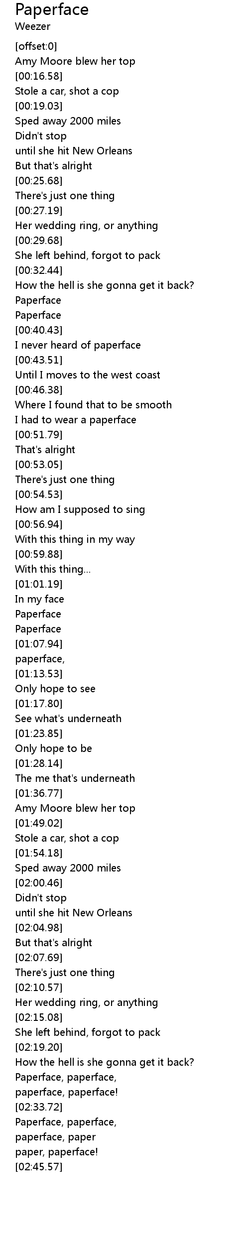 Paperface, paperface, |