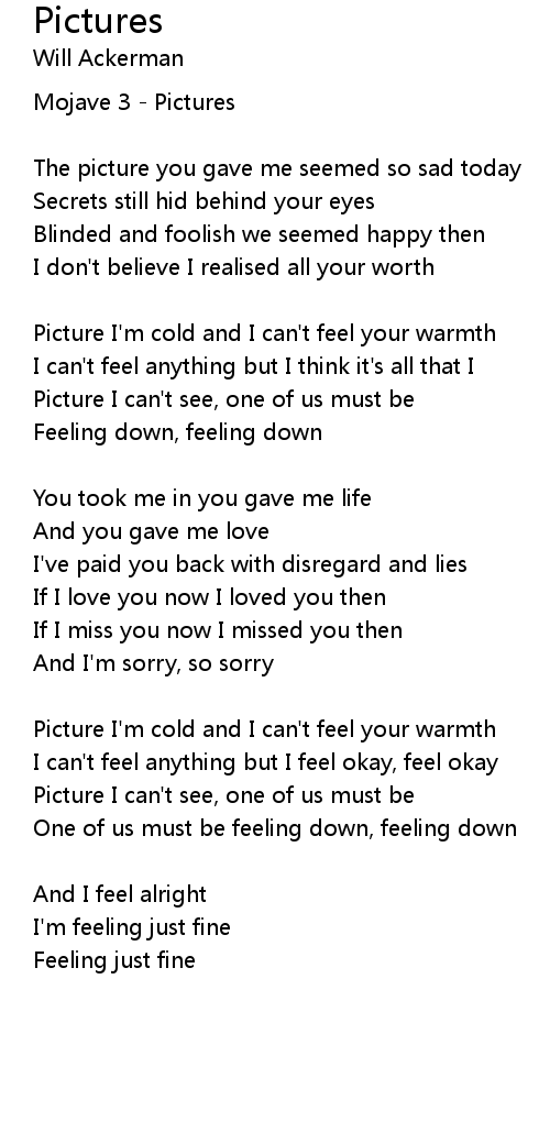 Picture I'm cold and I can't feel your warmth |