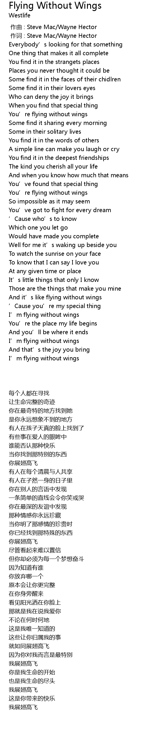 | 歌曲 | Flying Without Wings |