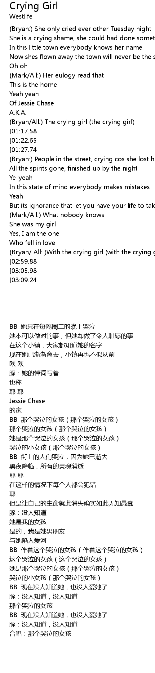 (Bryan/All:) The crying girl (the crying girl) |