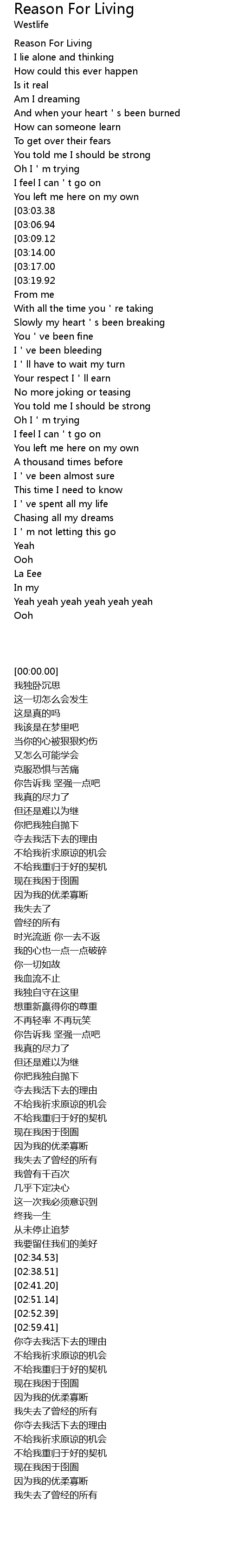 | [03:24.45][03:03.38][01:50.55][00:41.29] | Without a reason for living |