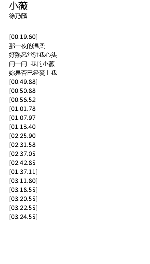 | [02:59.72][02:37.05][01:25.49] | 小薇小薇 让我看看妳双眼 |