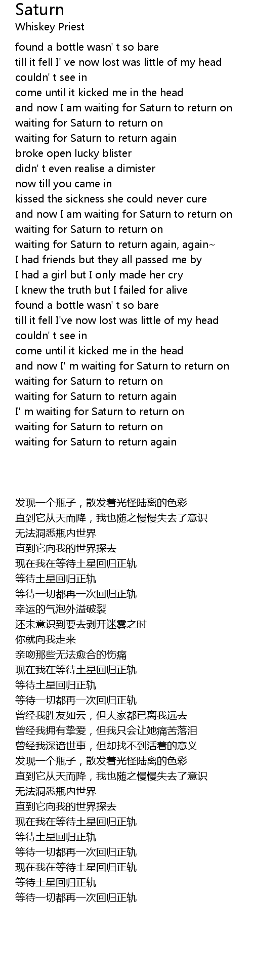 and now I' m waiting for Saturn to return on |