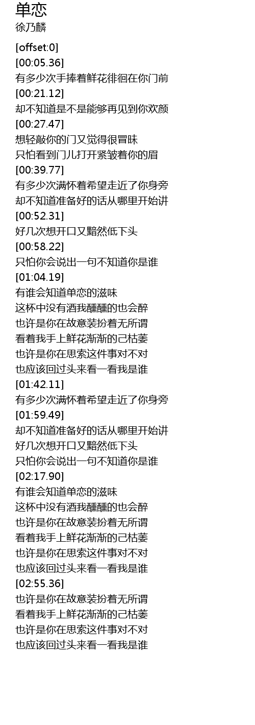 | [02:19.60] | 有谁会知道单恋的滋味 |
