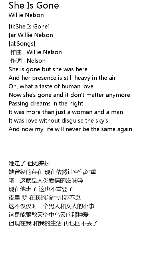 | [00:24.28] | She is gone but she was here |