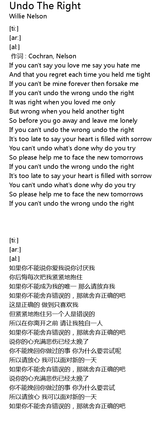 | [01:40.69] | If you can't undo the wrong undo the right |