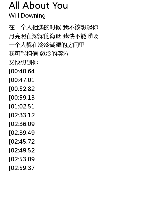 | [03:29.08][02:59.37][01:33.13] | it' s all about you |