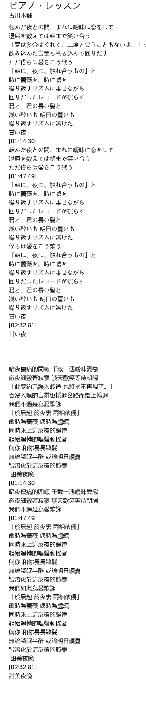 | [01:25.75] | 転んだ夜との間、まれに曖昧に恋をして |