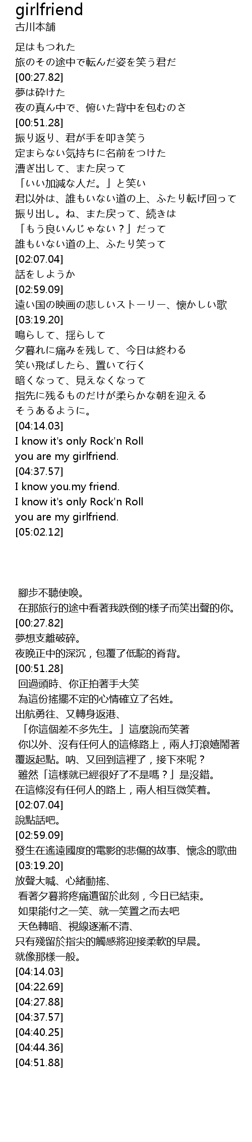 | [04:22.69] | I know it' s only Rock' n Roll |