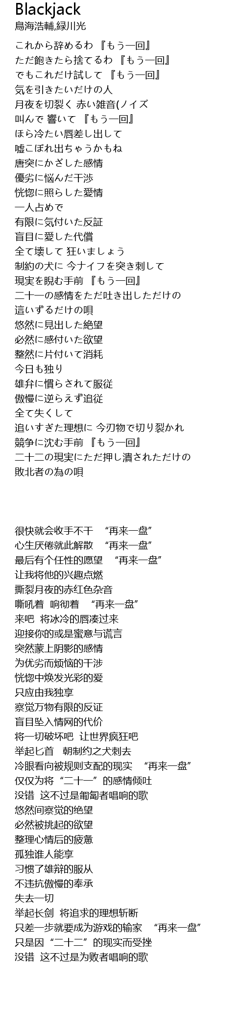 | [00:36.10] | 嘶吼着 响彻着 “再来一盘” |