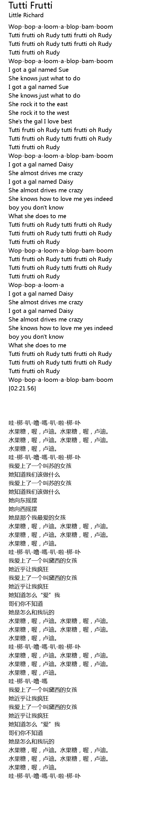 Tutti frutti oh Rudy tutti frutti oh Rudy |