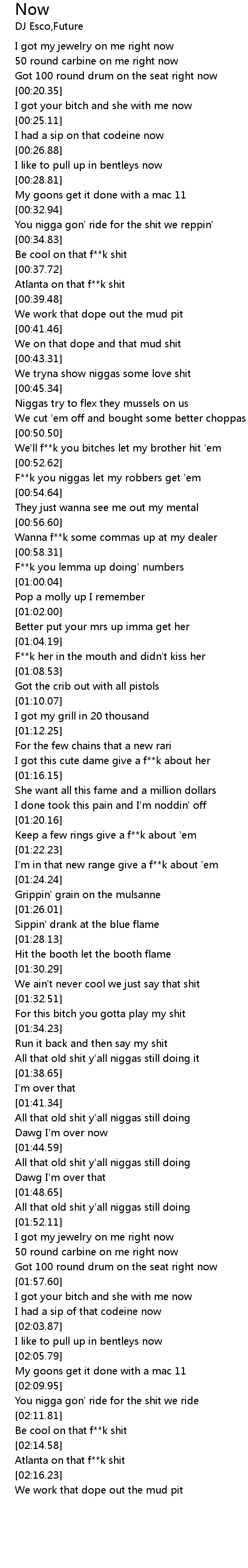 | [01:37.15] | All that old shit y'all niggas still doing it |