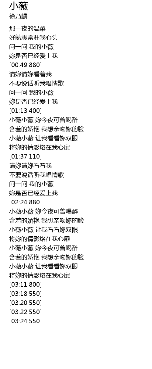| [02:37.050] | 小薇小薇 让我看看妳双眼 |