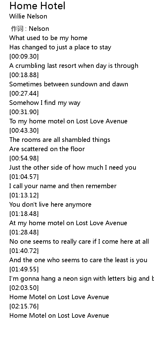 | [02:17.68] | Home Motel on Lost Love Avenue |
