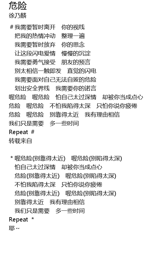 | *喔危险(别靠得太近) 喔危险(别陷得太深) | |