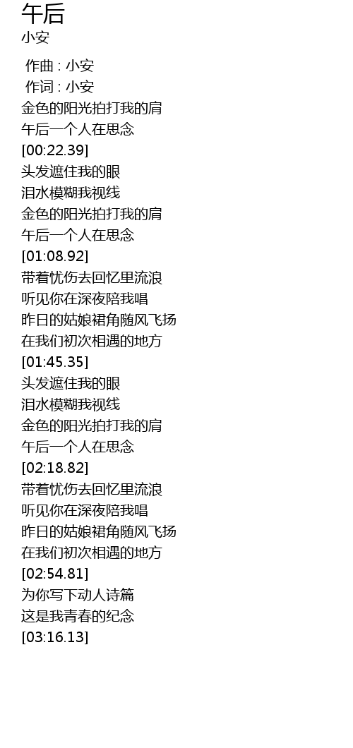 | [00:01.00] | zuò cí : xiǎo ān |