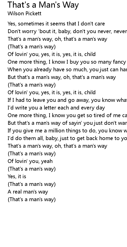 That's a man's way, oh, that's a man's way |