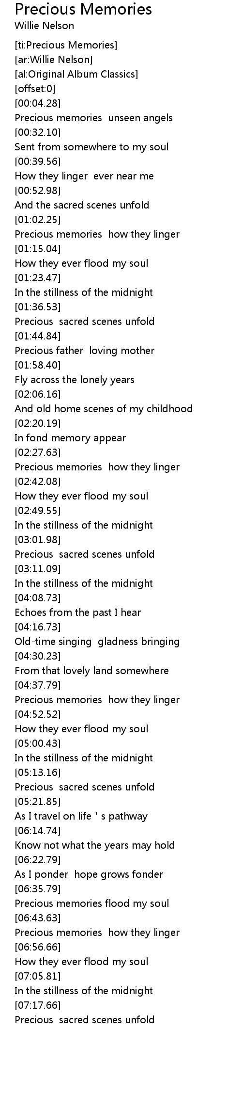 | [06:37.55] | Precious memories flood my soul |