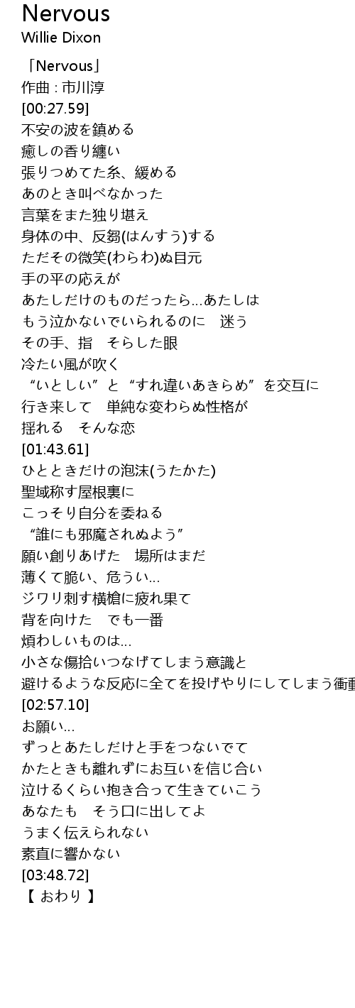 | [02:47.64] | 避けるような反応に全てを投げやりにしてしまう衝動 |