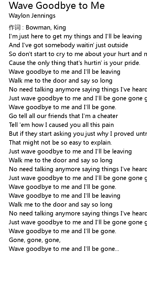 | Wave goodbye to me and I' ll be leaving | |