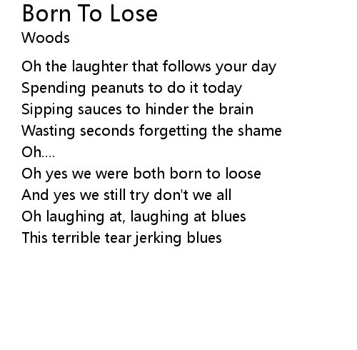 | Oh yes we were both born to loose | |