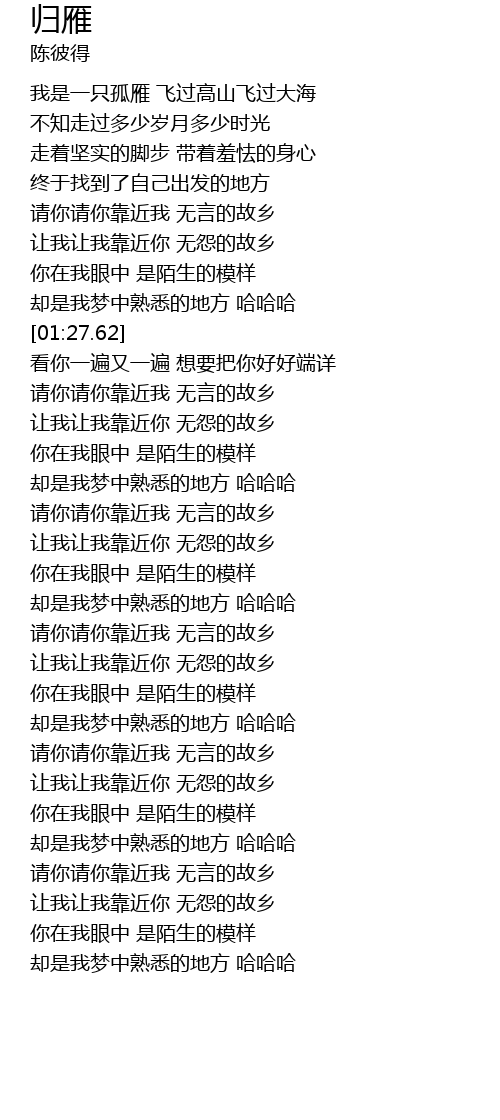 | [01:22.78] | 却是我梦中熟悉的地方 哈哈哈 |