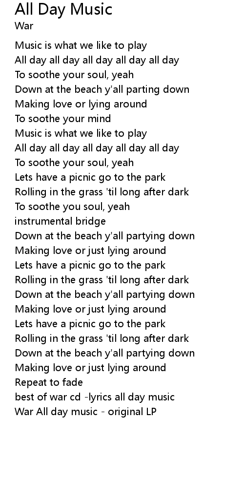 best of war cd -lyrics all day music |