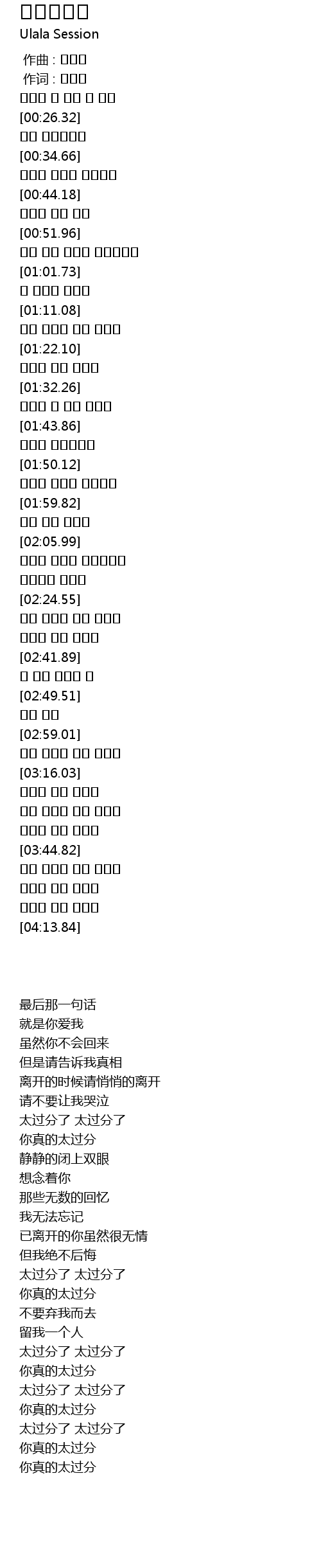 | [03:52.12] | 你真的太过分 |