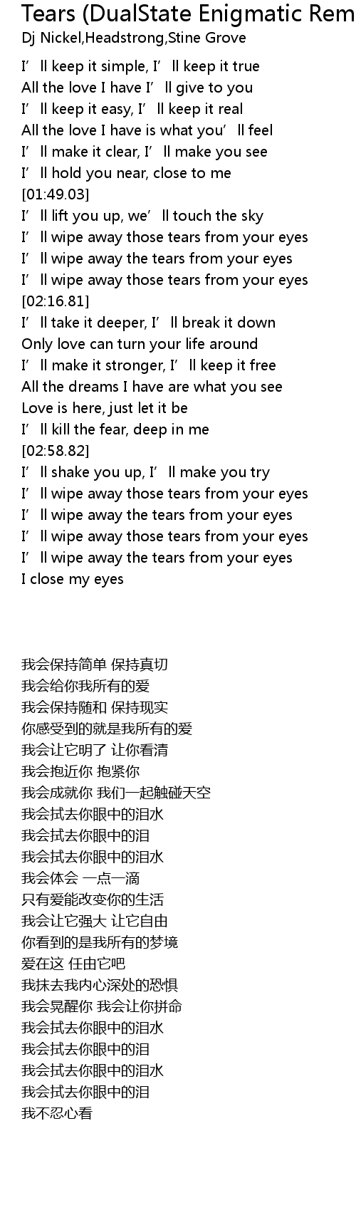 | 歌曲 | Tears (DualState Enigmatic Remix) |