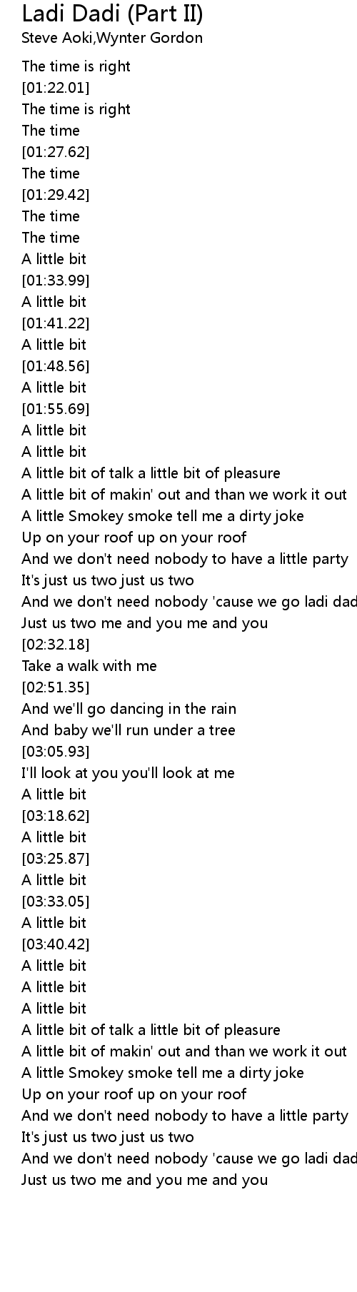 And we don't need nobody 'cause we go ladi dadi |