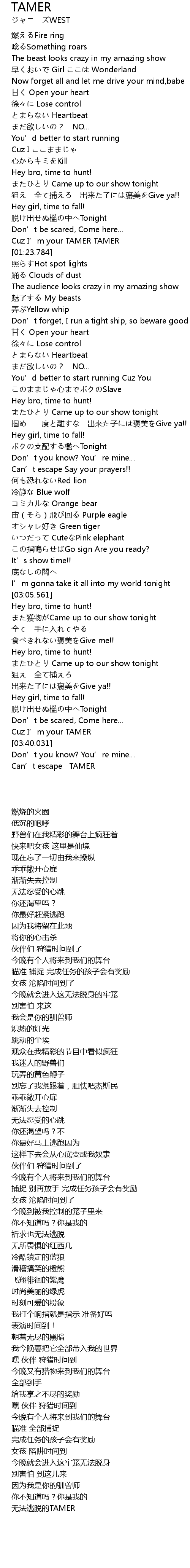 | [03:34.347] | Cuz I' m your TAMER |