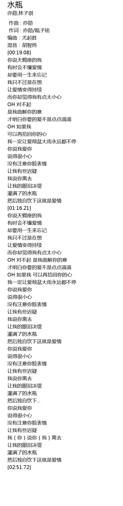 | [00:01.00] | 作词 : 亦勋/瓯子铭 |