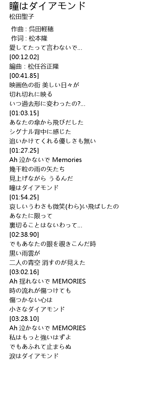 | [01:50.05] | 瞳はダイアモンド |