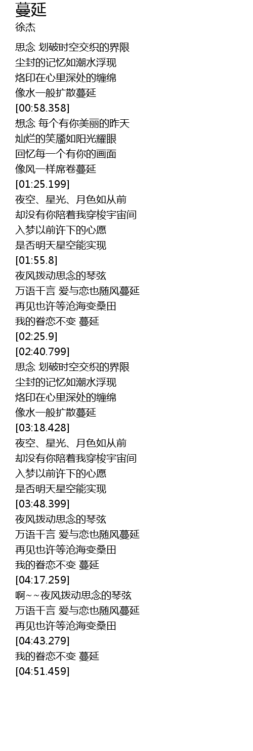 | [04:11.399] | 我的眷恋不变 蔓延 |
