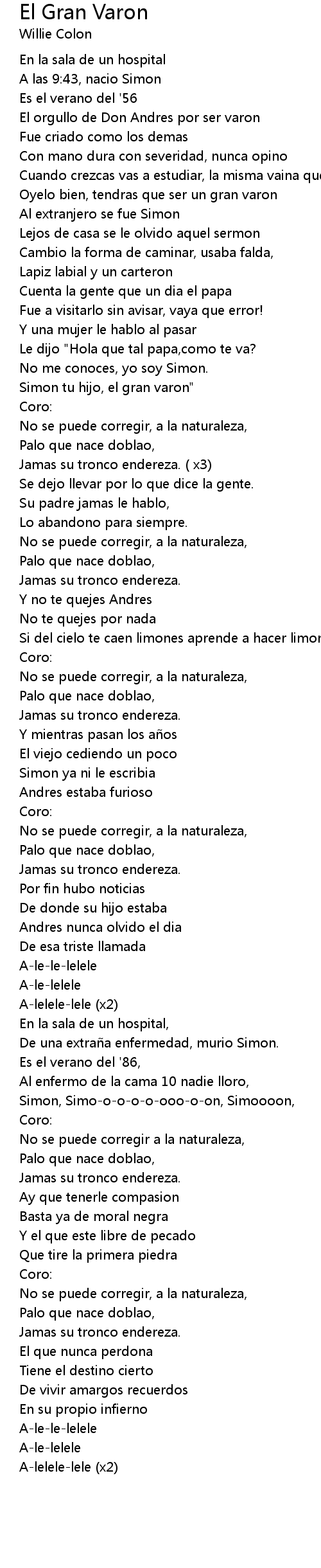 | 歌曲 | El Gran Varon |