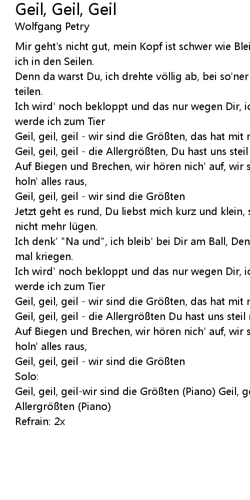 | Geil, geil, geilwir sind die Gr ten Piano Geil, geil, geildie Allergr ten Piano | |
