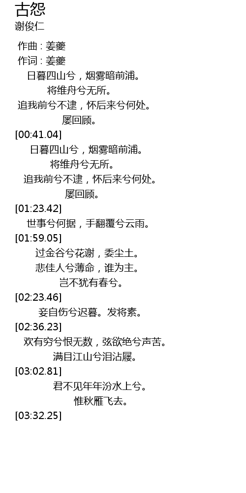 | [02:51.39] | 满目江山兮泪沾屦。 |