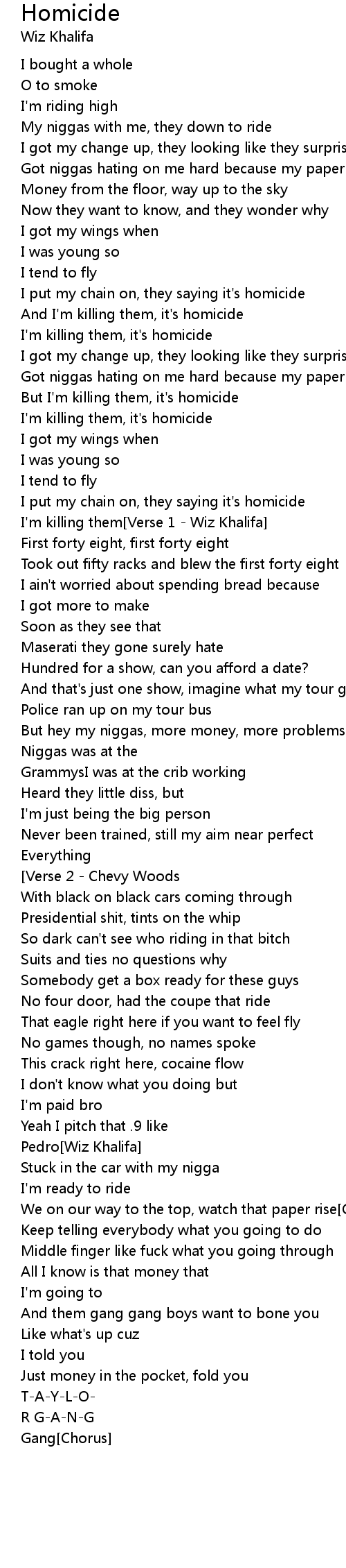 I'm killing them[Verse 1 - Wiz Khalifa] |