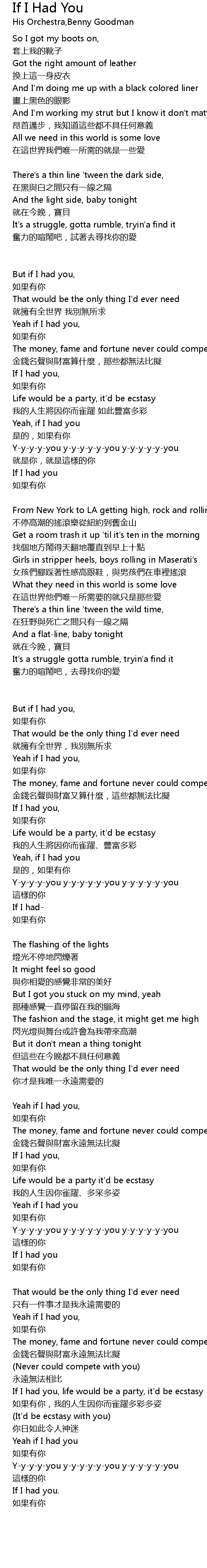 | rú guǒ yǒu nǐ, wǒ de rén shēng yīn nǐ ér què yuè duō cǎi duō zī | |
