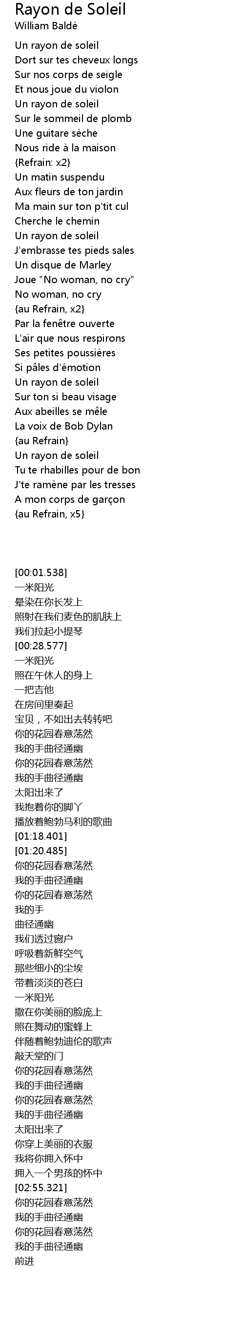 | 歌曲 | Rayon de Soleil |