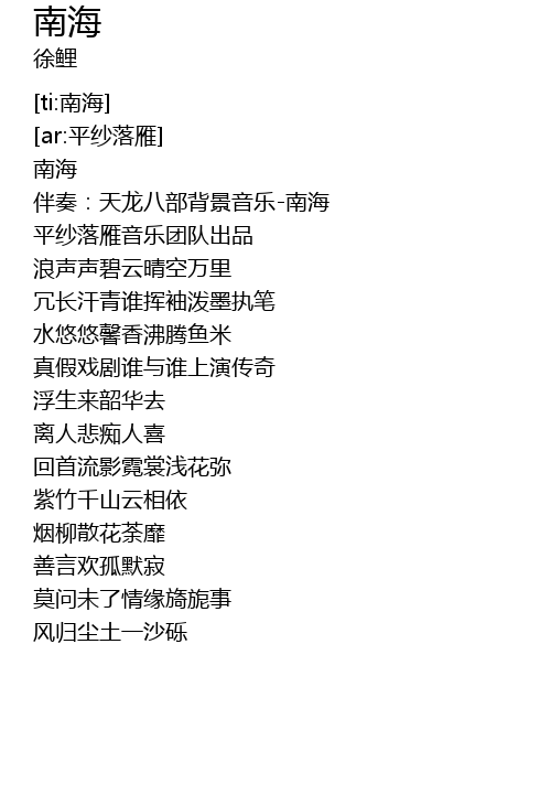 | [00:01.990] | 伴奏:天龙八部背景音乐-南海 |