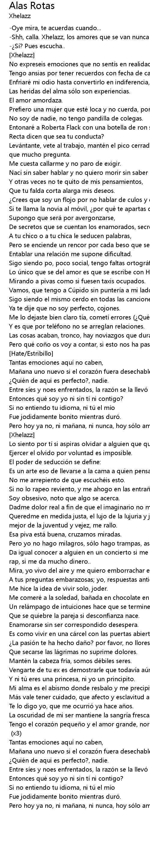 | Shh, calla. Xhelazz, los amores que se van nunca vuelven. | |