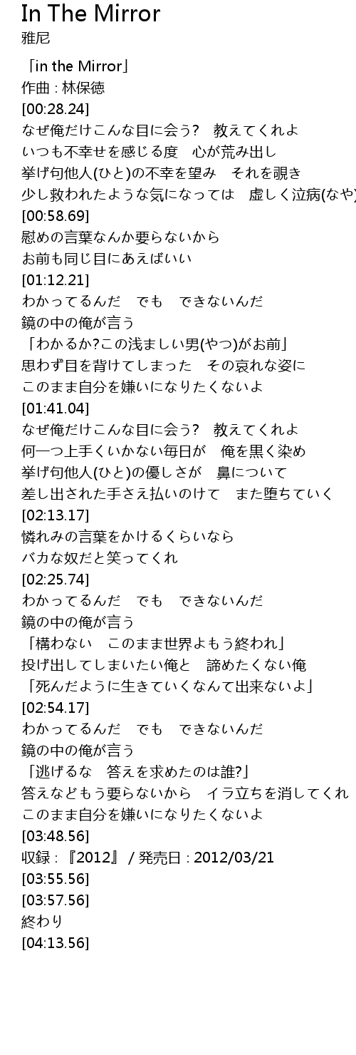 | [00:00.24] | in the Mirror |