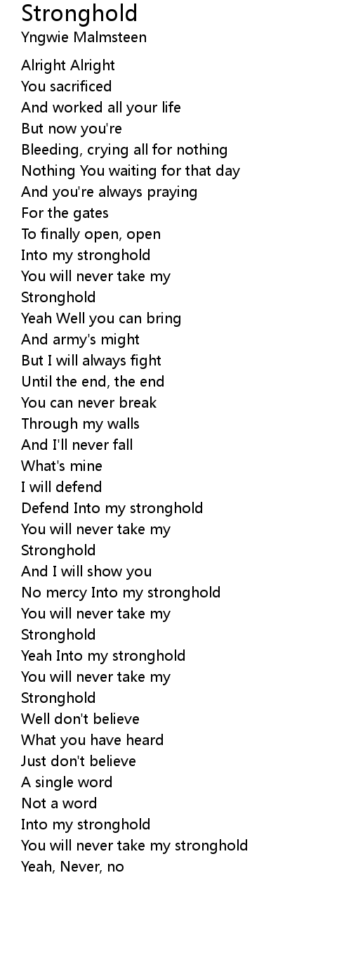 You will never take my stronghold |