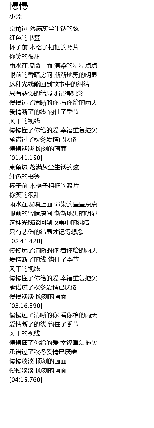 | [01:23.120] | 慢慢懂了你给的爱 幸福重复拖欠 |