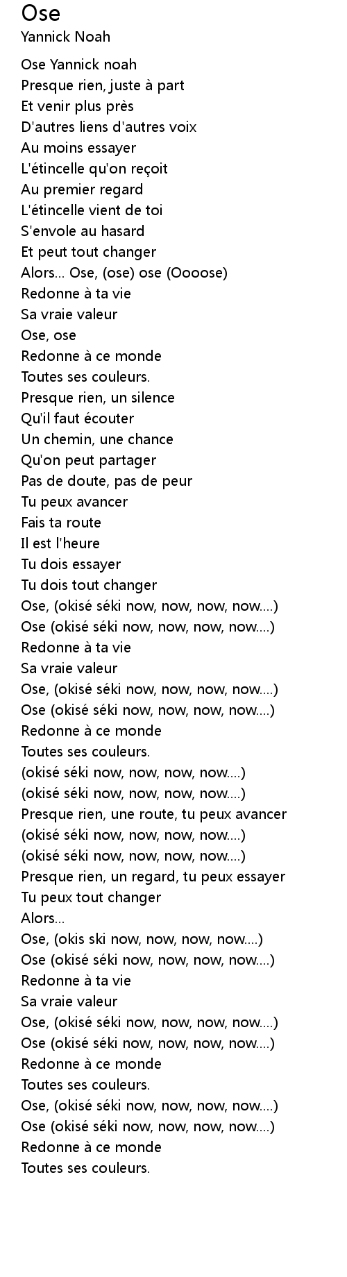 | Alors... Ose, (ose) ose (Oooose) | |