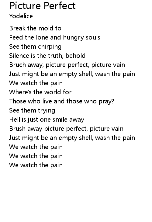| Bruch away, picture perfect, picture vain | |