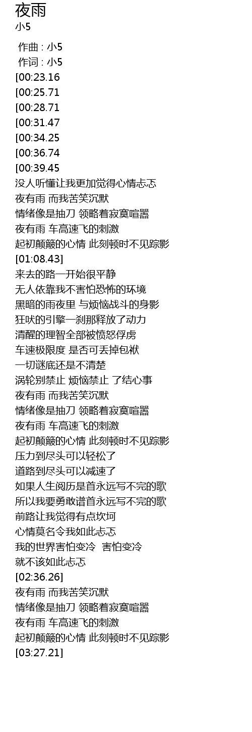 | [02:57.64] | 夜有雨 车高速飞的刺激 |